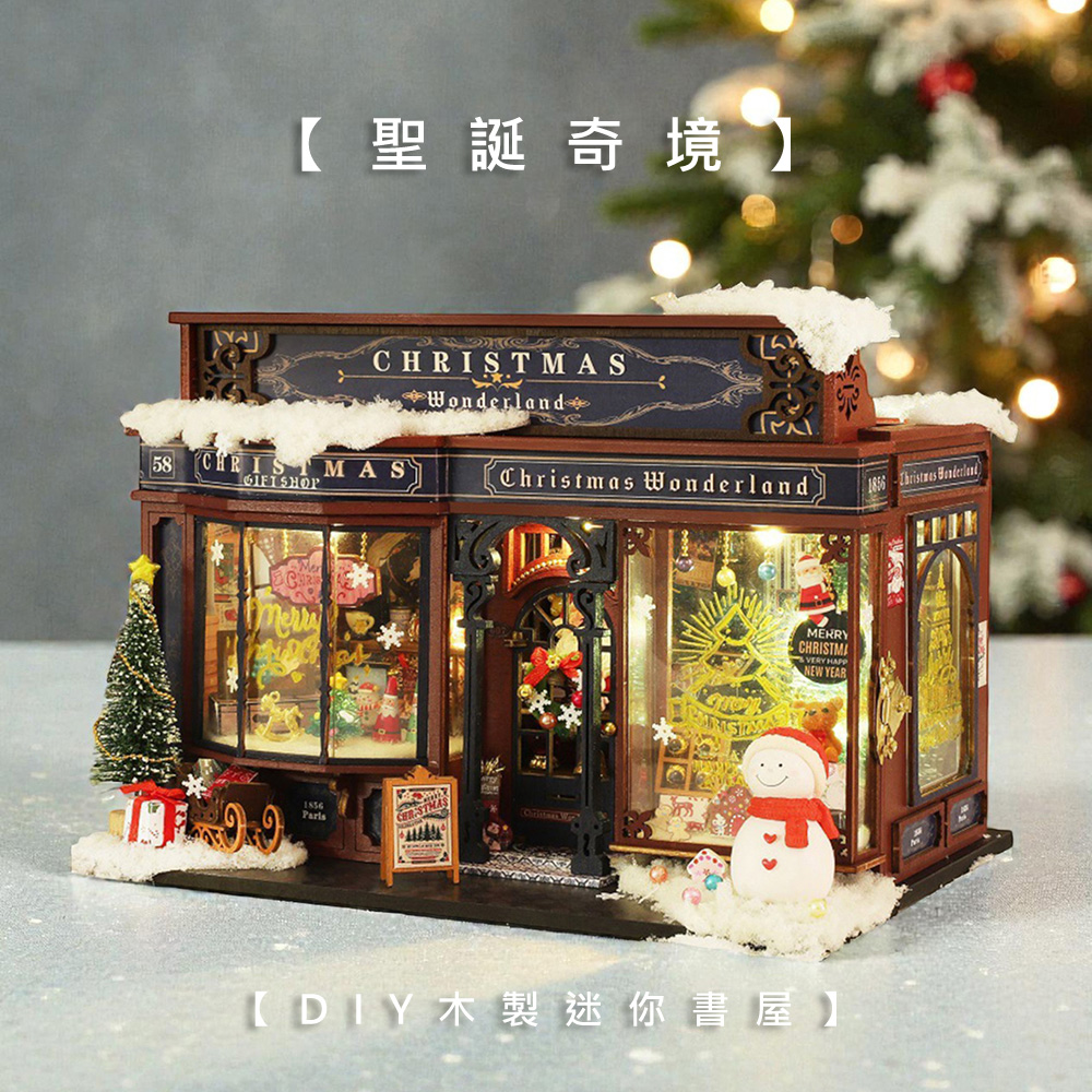 DIY木製迷你書屋材料包/聖誕奇境