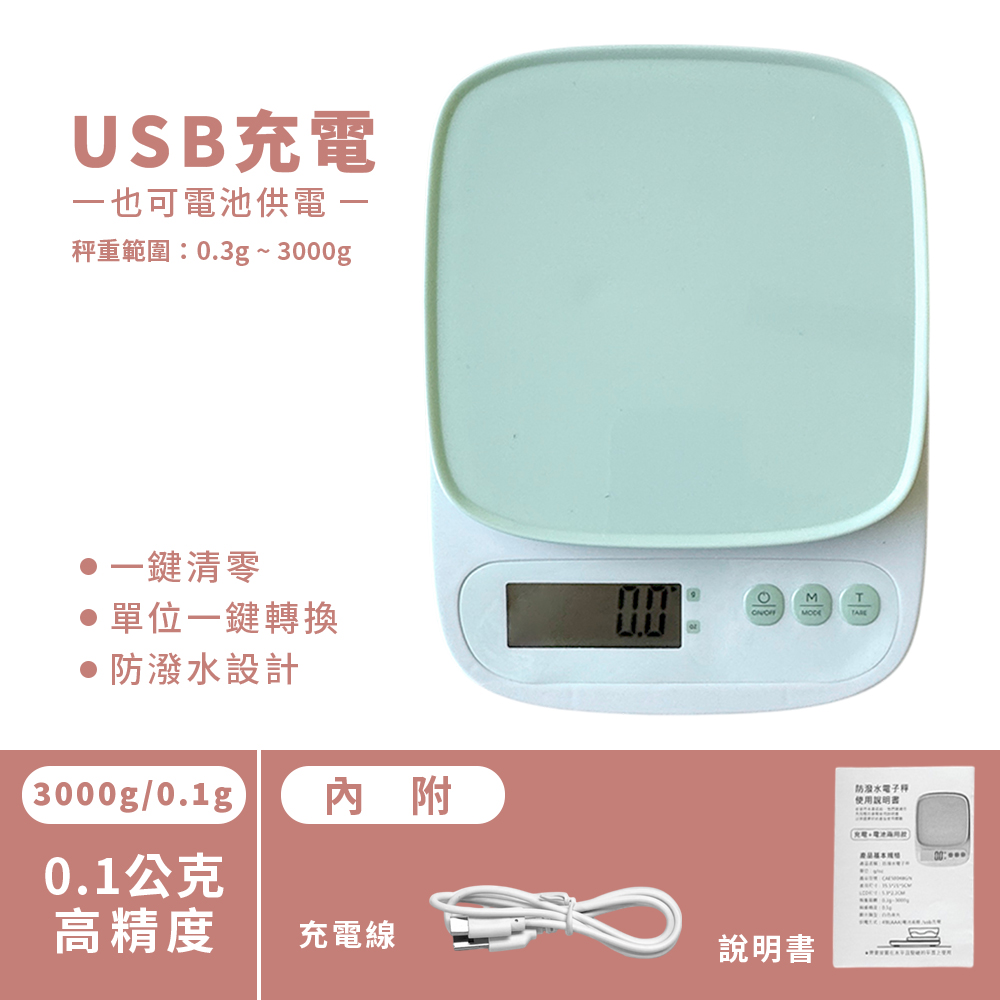 廚房防潑水電子秤 3000.0/0.1g