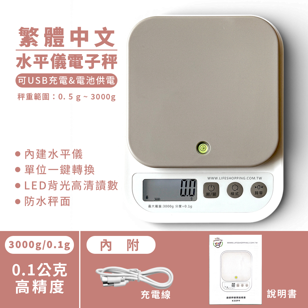 繁體中文 水平儀電子秤 3000.0/0.1g